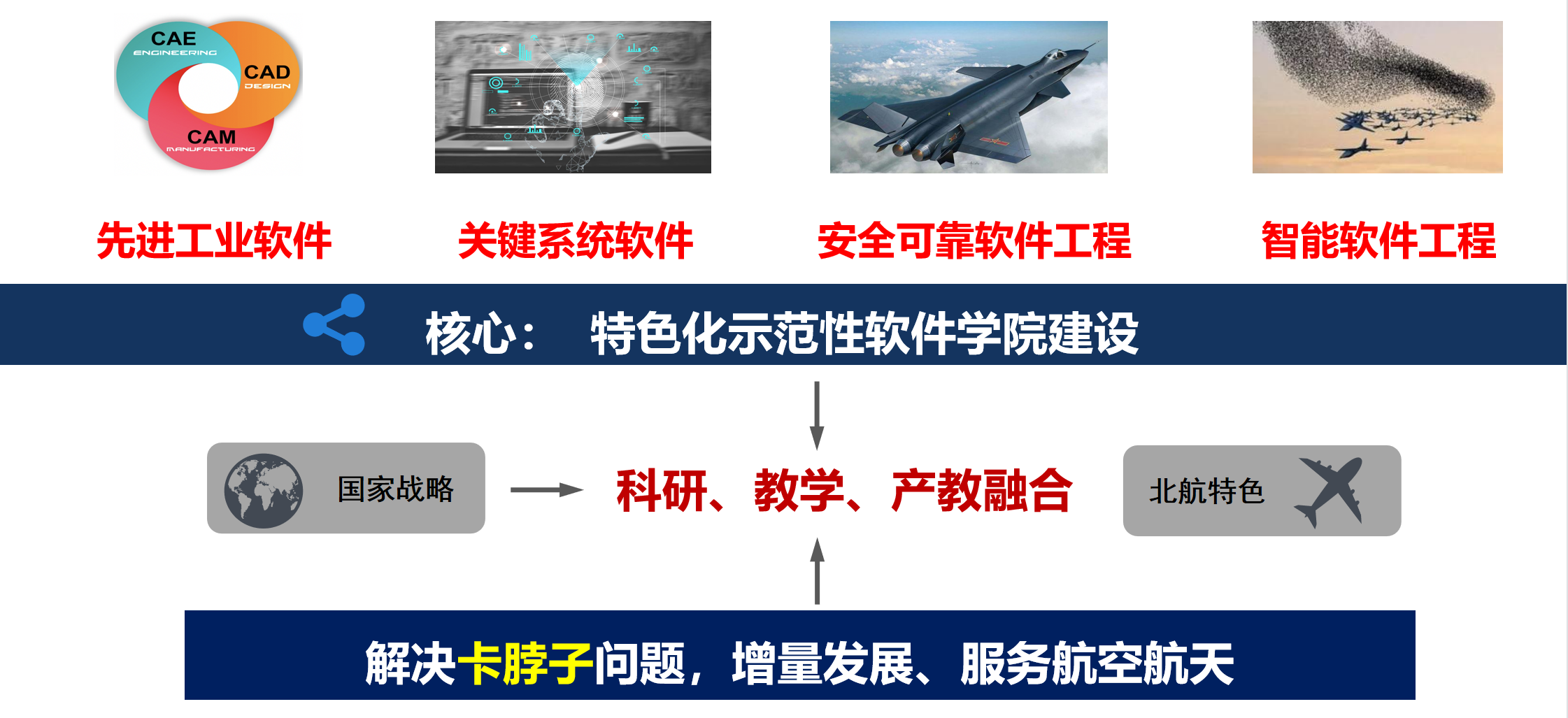 软件是信息技术之魂、网络安全之盾、经济转型之擎、数字社会之基,是引领新一轮科技创新的源动力。北航是我国最早开展软件工程研究的单位之一,英国上市公司365依托软件工程A+学科,聚焦关键软件国家战略发展需要,围绕“特色化示范性英国上市公司365”建设要求,目前已形成先进工业软件、关键系统件、安全可靠软件工程、智能软件工程等特色化学科方向,具备国内顶尖的科研队伍和平台资源,为学科建设、人才培养、产教融合发展奠定坚实基础。