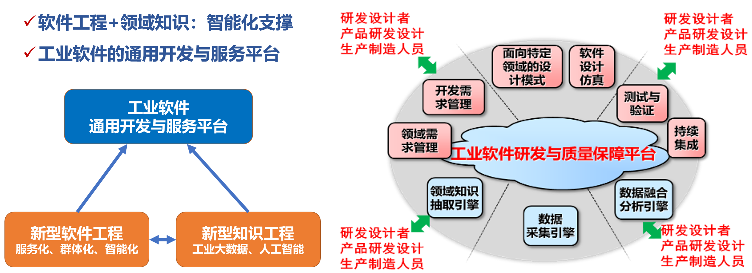 围绕制造强国战略对大型工业软件自主可控的战略需要,依托北航在软件工程的学科基础及机械、力学等多学科优势,形成以软件为核心的多学科交叉融合平台。重点研究模型驱动的工业软件开发方法、工业软件需求挖掘与逆向工程、工业软件演化与体系结构、工业知识挖掘与数字孪生等,研制面向大型工业软件开发与运维的一体化开发环境、知识驱动的智能化工业软件开发工具,汇聚工业软件资源,打造我国工业软件生态。增强我国工业软件自主研发能力、提高工业软件开发效率和质量,推动先进工业软件开发方法与运行环境的集成化、智能化。